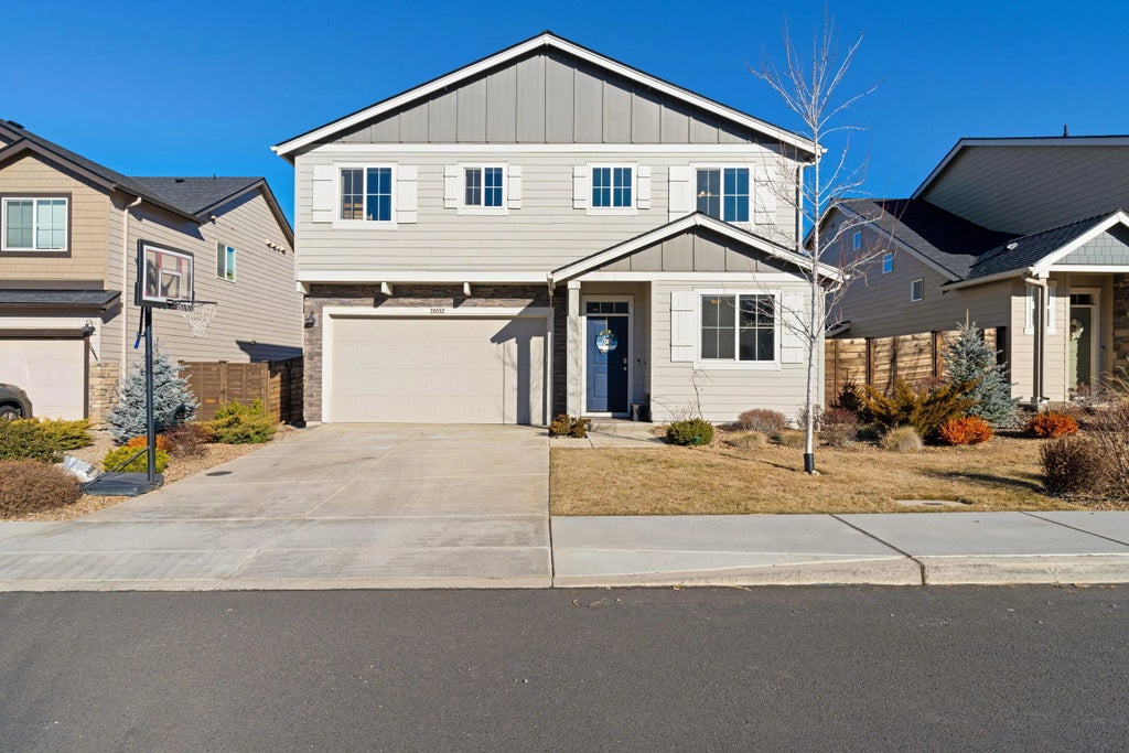 This beautifully maintained home is truly turnkey. The kitchen features a large island, quartz countertops, ample cabinetry, a pantry, and is perfect for gatherings. Enjoy cozy evenings in the inviting living room next to the gas fireplace, perfect for entertaining & unwinding. Step outside to a grass backyard with a large patio, sprinklers, cedar garden boxes with drip system, and in ground poles for string lights to enjoy evenings outdoors. With 1 bedroom on the main level, and 4 more upstairs, this floor plan will work for everyone. Centrally located, it's under 2 miles to the Old Mill District, 2.5 miles to the future Central Oregon library (2026), and 3 miles to downtown. Stone Creek offers the highly rated Silver Rail Elementary, a private pool, and a 6 acre Park. Shops & restaurants coming to the neighborhood soon!