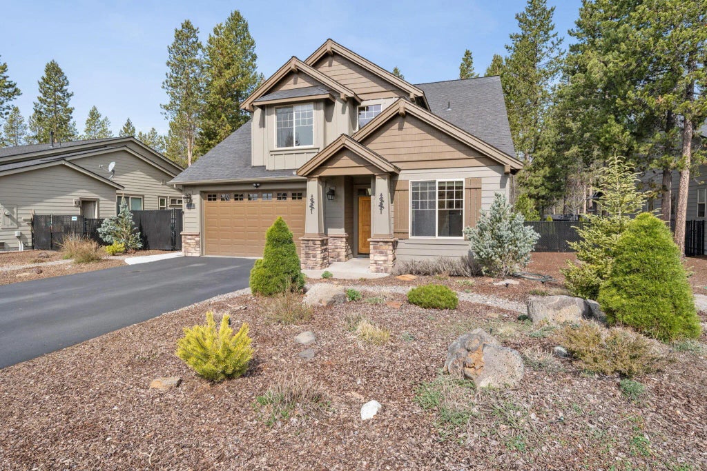 Crescent Creek Pahlisch home w/ NEW ROOF, 2,305 sq ft, 3 bedrooms + office (primary & office on main), upstairs loft-style movie room (sectional sofa, bluetooth audio, glass table, stereo, movie projector, 121'' wall screen, dimmable lights). Main-level primary suite with walk-in closet, direct slider access to the back porch, ensuite with a soaking tub, walk-in shower, and double vanity. Upstairs bedrooms with a Jack & Jill bathroom with double vanity. The kitchen with hickory cabinets (under cabinet lights), pantry, breakfast bar with barstools, and stainless steel appliances. Dining area with 8' sliding doors leading to the backyard (gazebo with fire table, large patio, drip irrigation, landscaped, fenced, rv space, storage bins, raised garden beds, solar lights). Dramatic vaulted 20' ceilings and beautiful hickory hardwood floors throughout the main living area (carpet in great room), anchored by a cozy gas fireplace. Central heating & cooling, W/D, leaf gutter covers, solar tube!
