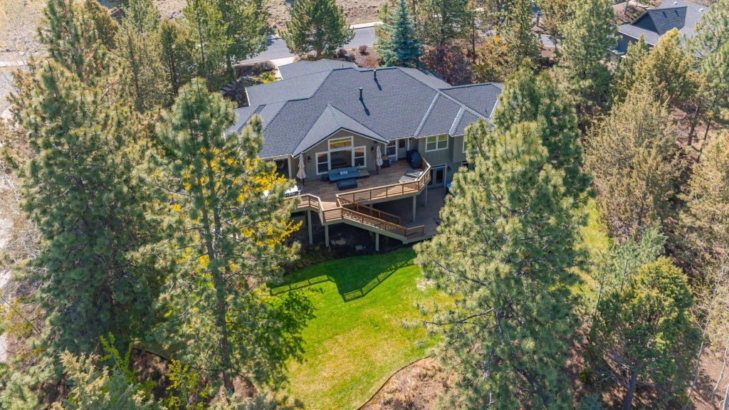 This custom-designed mountain modern home offers the perfect blend of elegance and comfort. With views of the Cascade Range, this stunning property is an entertainer's dream. The main level of the home offers the primary suite along with 3 additional bedrooms, another 1.5 bathrooms, laundry plus the home office with custom built in's. The lower level of the home includes a full home gym with a new Nordic Spruce sauna and hot tub on the patio, additional guest suite, home theater, fireplace, full bar and game area large enough for a pool table, the bar has a built in refrigerator that holds multiple kegs for the built in taps at the bar. This home has been meticulously maintained and thoughtfully updated. Recent upgrades include a new roof, fresh interior paint, new fixtures, custom interior doors throughout, custom front door, new wood flooring, a new furnace, and a new gym floor. Surrounded by beautifully landscaped grounds on 1/2 acre on a flat corner lot.