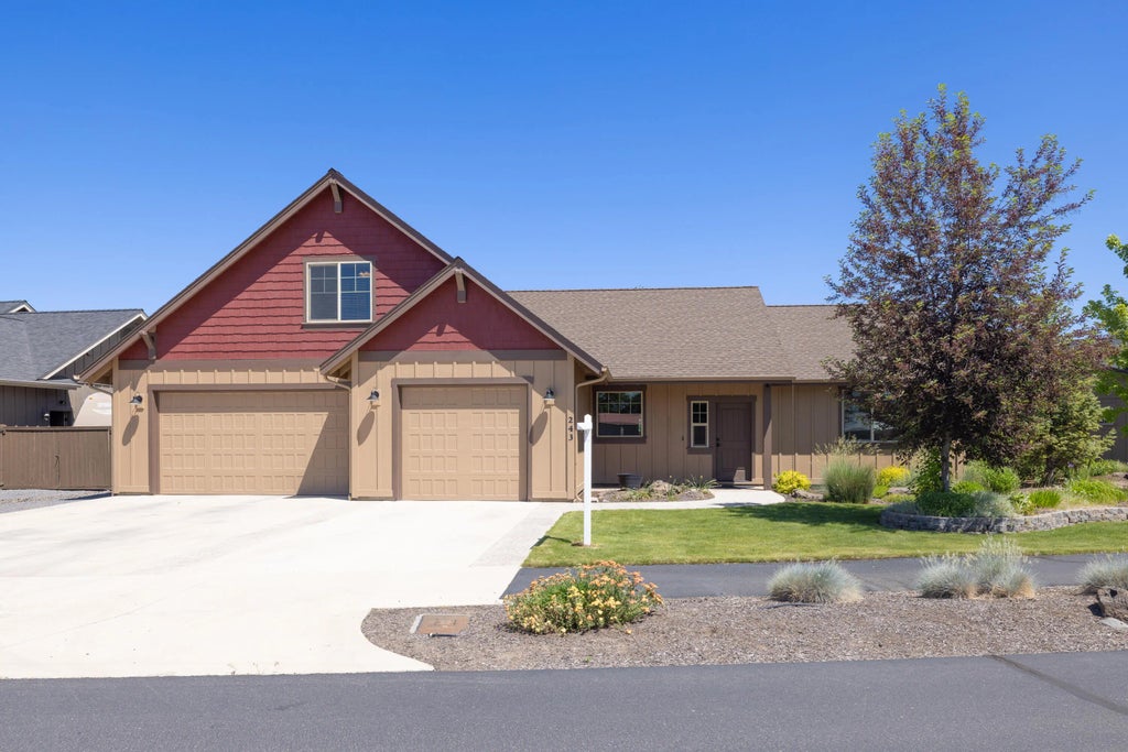 Welcome to 243 NW Saddle Ridge Loop, where comfort and space come together beautifully! This inviting home offers vaulted ceilings, hardwood floors, and a cozy corner fireplace. The expansive open floor plan is perfect for gathering—whether you're in the kitchen or relaxing by the fire. Fresh exterior paint adds to the curb appeal, and the landscaped front and backyards complete the move-in ready feel. Step outside to the peaceful, fenced backyard with a covered patio and easy kitchen access. The privately located primary suite offers separation from the other bedrooms for added quiet and retreat. Two additional bedrooms and a shared bath sit off the main living area, while a spacious upstairs bonus room adds even more flexibility. The 3-stall garage is perfect for storage, hobbies, or extra parking.