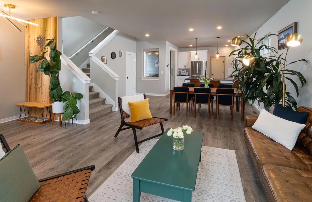 Welcome to this impeccably maintained home in the desirable Triple Ridge community. Featuring a bright and open floor plan with tons of upgrades including quartz countertops, high end appliances, laminate wood flooring, and a smart lighting system, this home is comfortable and inviting! Located upstairs, the primary suite has a spacious custom walk-in closet, double sinks, and flexible nook area. You will also find 2 nicely sized bedrooms, a full bath, laundry room and bonus room. Exceptional outdoor living on the covered front porch or in the side yard offering covered and uncovered composite deck space and artificial grass perfect for pets and play. The 2-car garage with alley access is ideal for gear storage! Community amenities include an outdoor pool, barbecue area, parks, and walking trails. With easy access to nearby shopping and recreational activities, along with hassle-free front yard landscaping provided by the HOA, this distinctive home is ready to start making memories!