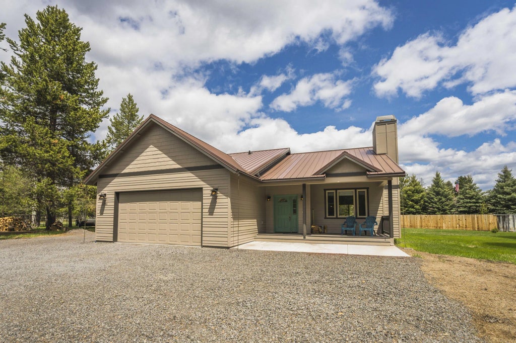 Welcome to your dream retreat on a prime corner lot! This stunning single-level home invites you in with a charming covered front porch. Step inside to a great room boasting soaring vaulted ceilings, a cozy wood stove atop a raised hearth with tile surround, and floods of natural light. The open kitchen captivates with tile counters, a spacious island breakfast bar with prep sink, and a spacious pantry. Savor meals in the airy dining area, enveloped by windows that bathe the space in sunlight. New custom window coverings with blackout shades grace the bedrooms, including a luxurious primary suite featuring a generous walk-in closet and private sliding door to the expansive covered back deck—ideal for year-round entertaining and relaxation. A 12x16' storage shed on a concrete slab, RV parking with water, sewer, and 30-amp power, and a sprawling level yard offer endless possibilities. The convenient laundry room with utility sink and paved road access complete this exquisite property.