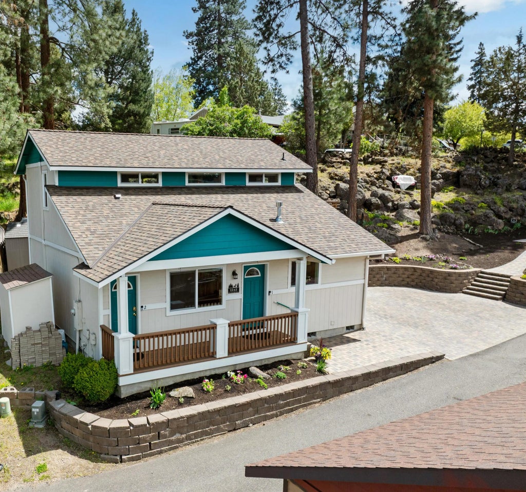 Incredibly unique home in a prime Bend location, just steps from the vibrant Old Mill District and the scenic Deschutes River. Enjoy the cascade mountain views from this one-of-a kind property, perfectly blending lifestyle and investment potential. Fantastic rental property! The lower level features a 926 SF, 2-bedroom, 1-bathroom unit. It has been professionally cleaned and painted and is ready for comfortable living or a tenant. Upstairs is a permitted 450 SF ADU with a private entrance, deck, murphy bed, and cellular blackout shades. Other upgrades include HVAC, LVP flooring, tankless water heater, new roof July of 2024, and exterior paint 4 years ago. Backing to a serene rock hill, this property provides natural privacy with opportunities to create cozy and scenic outdoor seating areas and additional landscaping. A rare gem for investors or homeowners seeking the best of Bend's outdoor, cultural, and academic amenities.