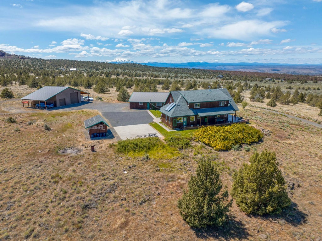 Looking for privacy without sacrificing convenience? This stunning 79-acre estate offers the best of both worlds—seclusion and sweeping views, just minutes from town. Surrounded by open grasslands and bordered by National Forest, this one-of-a-kind property features a beautifully crafted 2,900 sq ft home with 3 bedrooms, 2.5 bathrooms, an office, and a versatile bonus room that can serve as a 4th bedroom. Enjoy panoramic 360-degree views from every window. A detached two-car garage includes a charming guest house—perfect for visitors or multi-generational living. The property also boasts a large RV garage/shop, fully insulated with a 50-amp hookup, concrete floors, and a durable metal roof—ideal for storing all your Central Oregon adventure gear. Lovingly built and meticulously maintained, this home offers the peace and space you've been dreaming of, all within easy reach of town amenities. Don't miss this unique opportunity to live your Central Oregon dream!