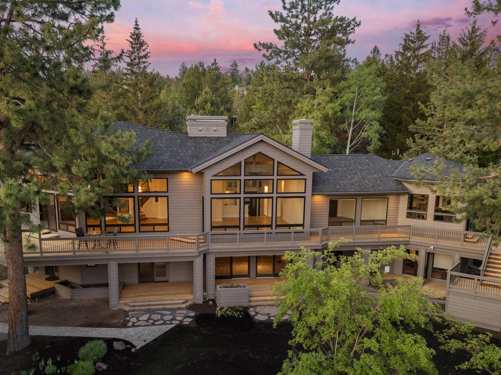 Incredible value and quality on the Butte. Enjoy breathtaking views of Mt. Bachelor, Broken Top, and the Three Sisters from this exquisitely renovated .77-acre retreat. A 2024 transformation elevates sophistication with a new roof, all-new windows and doors, and a chef's kitchen with Thermador and JennAir appliances, a 10-foot island with prep sink, walk-through pantry, and functional mudroom. The main level features vaulted living and dining areas with a double-sided fireplace, a vaulted primary suite with spa-like bath and laundry, and two flexible offices. Expansive decks capture sweeping Cascade views and a serene backyard designed for entertaining. The lower level includes a private guest suite with separate entrance, kitchenette, laundry, a den with fireplace, and Jack-and-Jill bedrooms. Additional highlights include a wine room, elevator, hardwood floors, new carpet, flat driveway, 3-car garage, and ample storage, all minutes from schools, trails, and Bend's westside amenities
