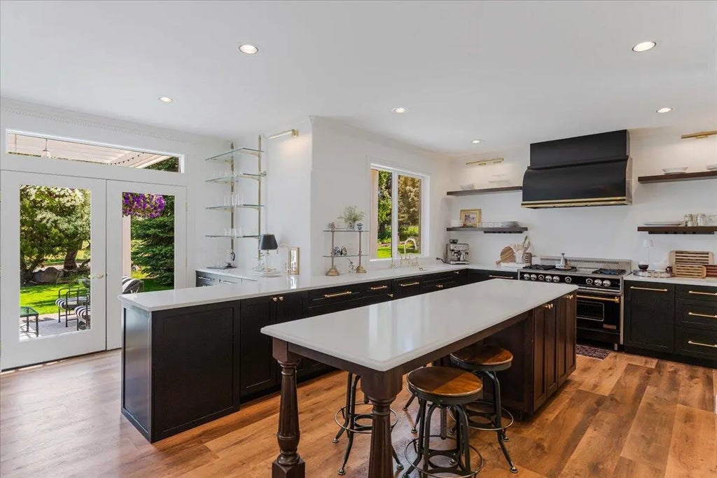 Furnished luxury retreat in Eagle Crest Resort, tucked beneath a canopy of mature trees and designed for peace, privacy, and upscale comfort. Wake up to quiet mornings on the balcony, spend afternoons fishing nearby, and unwind under the stars by the firepit. A dramatic entry welcomes you with a crystal chandelier and floor-to-ceiling windows framing the natural beauty outside. The chef's kitchen features a 48'' black-and-brass range, hidden storage, and handcrafted cabinetry—ideal for entertaining. The spacious layout includes a refined primary suite, private guest or multigenerational quarters, three additional bedrooms, a dedicated office that can serve as a downstairs bedroom, media lounge, and flexible bonus space. A six-car garage and tree-lined driveway offer room for guests and gear. Ownership includes access to all three resort sports centers, pools, golf courses, and miles of trails. Perfectly located between Bend, Redmond, and Sisters—Central Oregon living at its finest.