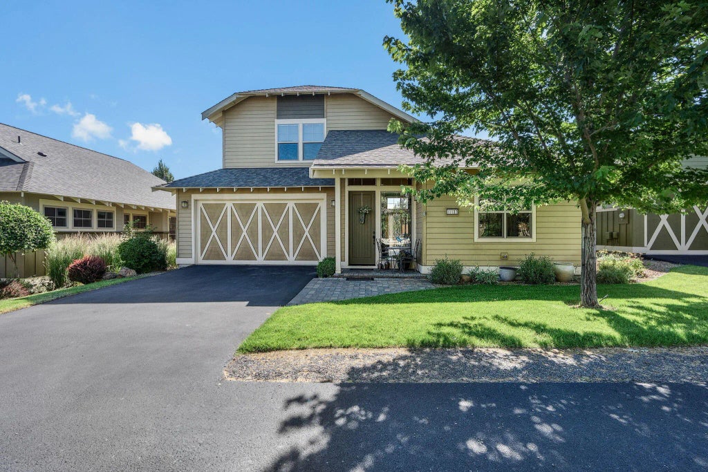 Enjoy all the fine amenities of Eagle Crest Resort each day from your private oasis on the west side of the Butte near Lakeside Sports Center. Situated on the edge of vast BLM land, you'll enjoy amazing views of the Cascades from upstairs. Vaulted great room w/new durable wood look flooring in main living areas, stacked stone cozy gas burning fireplace w/natural Slate accents + mantle, built in media cabinet. Floor to ceiling windows/sliding door opens to the back patio inviting an abundance of natural light. Kitchen features granite countertops, ample cabinetry & counter prep space & breakfast bar seating. Primary on the main features sliding glass door to the private patio, lg walk-in closet w/built-ins, dual vanities in bath w/tile shower & enclosed water closet. Two well-appointed bedrooms, loft space, & spacious full bath upstairs. Living in Eagle Crest includes access to 3 recreation centers, golf, tennis, pickleball, spa, miles of trails & much more.
