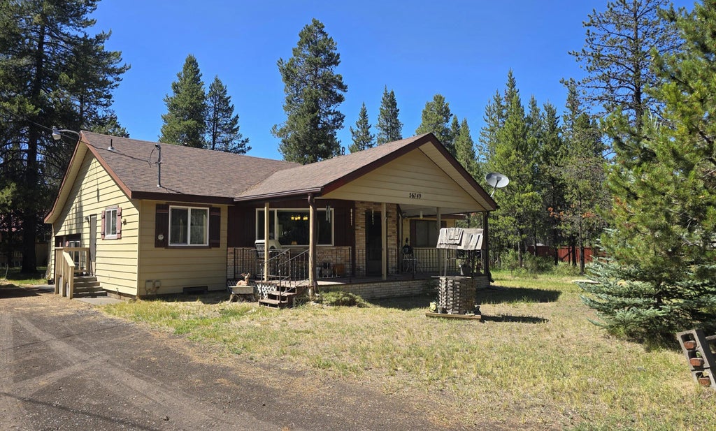 PRICE REDUCTION! MOTIVATED SELLER Sunriver Living-charming home has not been on the market in over 55+ yrs! On large corner lot w/tall Pines features a 3 bedroom, 1 bath home that is waiting for the right person to bring its vision to life w/this home. Living Rm has a beautiful stone fireplace, w/electric insert. Step down into a lg bonus room w/a small office space, & a woodburning stove. Previously it had vaulted ceilings, possible remodel might bring that to life again! Detached garage/shop has a apartment in it, currently used for storage, has possiblities of a ADU arrangement. Seller doesn't believe it was every permitted. Woodshed. There are 2 wells on property, one needs the pump reinstalled, was removed for the winter. This is a very nice, quiet area, and a great neighborhood that is close to all the Sunriver Resort activities, Mt. Batchelor, Lakes, and easy access to the Cascade Lakes Hwy and Bend.