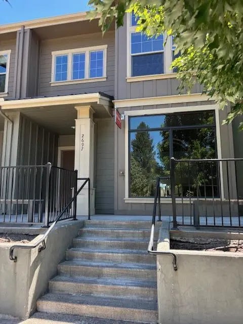 Discover a rare opportunity to own a LIVE/WORK townhome in one of Bend's most sought-after neighborhoods, NW Crossing. Just steps from Sparrow Bakery, schools, parks, shops, and the bustling Saturday Market, the location can't be beat! This versatile property offers two distinct spaces under one roof. The ground level features a newly renovated 538 sq. ft. COMMERCIAL MIXED USE space with its own entrance and half bath—perfect for a boutique storefront, office, or studio. Upstairs, the spacious residential area blends comfort & function. The layout includes two ensuite bedrooms, one on each level, plus a 3rd bdrm/office(this bedroom does not have a closet). The open-concept kitchen, dining, & living area is anchored by a cozy gas fireplace, the private patio off the primary suite is perfect for morning coffee. Largest unit in this row & has a detached two-car garage. Live upstairs & run your business below. Don't miss your chance to own this unique townhouse with lots of flexibility