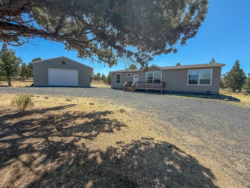 This newer 3-bedroom, 2-bath home features fresh interior paint and carpet, soaring 9' ceilings, and an open floor plan with a massive kitchen island/bar, abundant cabinetry, and a large pantry. The primary suite offers a walk-in closet and spa-like bath with double vanity, walk-in shower, soaking tub, and great storage. Enjoy front and back decks, a fenced dog area, and a 30x36 shop with power, WiFi garage door opener, and newly epoxied floor. A convenient circular drive makes parking and moving trailers easy. Schedule your tour today!