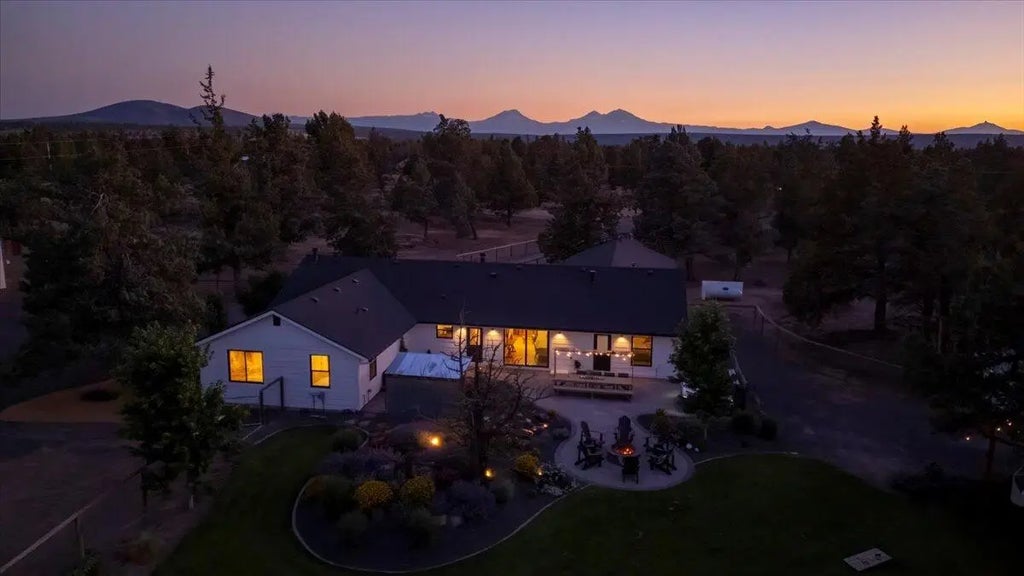 Welcome to your private oasis minutes outside the city limits. Nestled on 4.84 beautifully landscaped acres. This property offers the perfect blend of modern rustic living, outdoor serenity, and versatile functionality. A true gardener's paradise and entertainer's dream featuring a large paver patio, cozy firepit, inviting hammocks, a soothing water feature. The lush grounds include blooming flower beds and a greenhouse, ideal for green thumbs and peaceful moments alike. Animal lovers will appreciate the cross-fenced pastures, barn with paddocks, and dedicated chicken area. A large 4-bay shop with an amazing flex space area for guests. RV pad with full hookups. Inside, the home exudes modern rustic charm with upscale custom finishes throughout. The chef's kitchen includes a hidden walk-in pantry and flows into a bright, open living space with vaulted ceilings, exposed beams, and a stunning floor-to-ceiling fireplace. A big 3-car garage for all your gear.