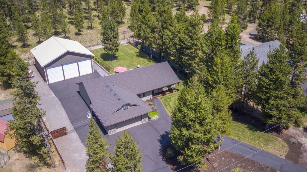Welcome to your dream home in beautiful Bend, Oregon! This charming single-level residence boasts 3 bedrooms, 2 bathrooms within 1,720 square feet. Perfectly situated on a ½ acre lot that backs up to 120 acres of private land where the Elk and Deer migrate. Step inside a bright and air-conditioned vaulted great room with custom window coverings & new carpet. The spacious kitchen features a breakfast bar, quartz countertops, and laminate flooring that flows into the dining area. The entire interior has been updated including fixtures, paint & trim. Updated bathrooms with tile floors and quartz countertops. The landscaped yard is fully fenced and equipped with a sprinkler system, complemented by a 720 sq ft paver patio ideal for gatherings. Plus, the property offers a 36x36 shop with 3 RV doors, perfect for all your toys! $275 yearly HOA covers snow removal, road maintenance and private neighborhood access to the Big Deschutes River. Minutes to Sunriver, Mt Bachelor and Cascade Lakes.