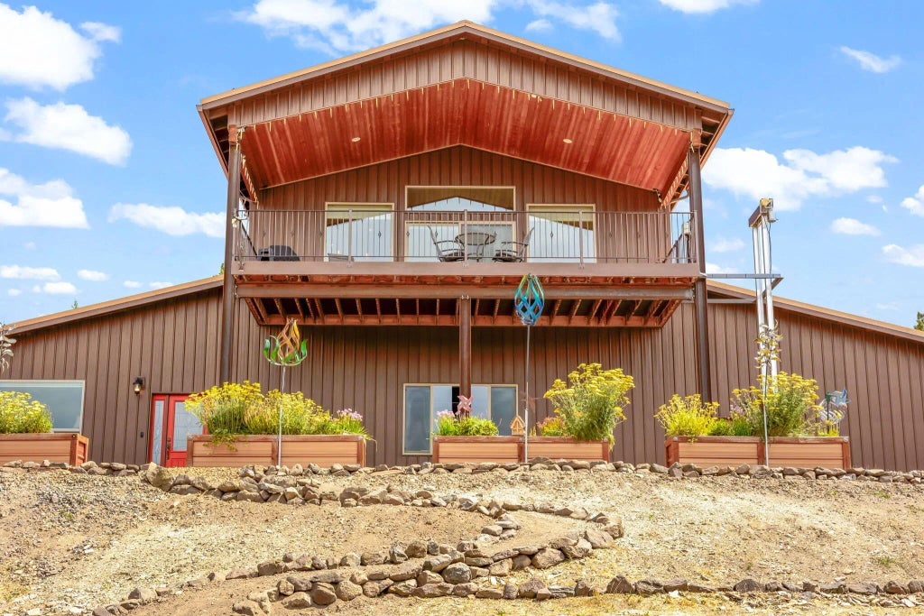 Rare opportunity! Just minutes from town, this fully custom barndominium-style home offers the perfect blend of comfort, functionality, and versatility. Featuring 2,750 sqft of thoughtfully designed living space, this private 3 bedroom, 2.5 bath residence is complemented by an attached 2,750 sqft shop and oversized 4 car garage - complete with its own bathroom and built in heater- ideal for work, storage, hobbies, and entertaining. Crafted with quality and efficiency in mind, the home includes 6' extra insulated walls, a whole house water filtration system, and a spacious kitchen with leathered granite countertops, custom hickory cabinetry and ample room to gather. Set on 5 acres with breathtaking mountain views, this property is perfect for those seeking both comfort and quality. Bring your toys, horses and livestock- there's room for it all! Enjoy 9 raised garden beds and unwind in the hot tub as you take in the views. A one-of-a-kind retreat you won't want to miss!