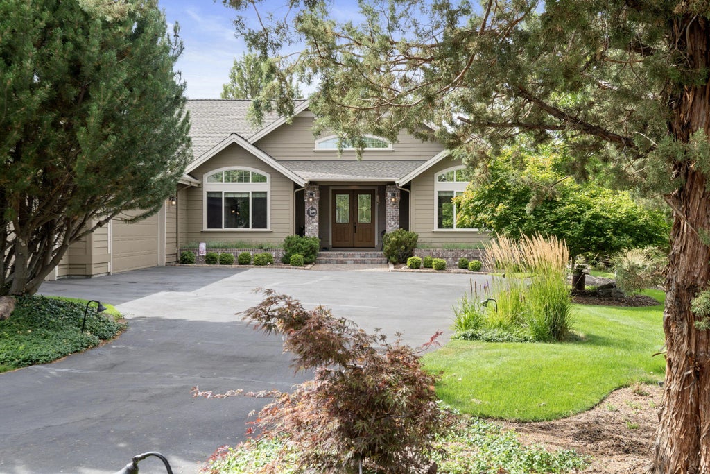 Welcome to this stunning custom home with a vaulted, light-filled floor plan designed for both relaxing and entertaining. The great room features a cozy gas fireplace, reclaimed wood beam flooring, and built-in bookshelves. A dedicated office/den with built-ins creates the perfect workspace. The private master suite offers a double-sided fireplace, spa-like bath with jetted tub, and French doors to a patio retreat. The kitchen showcases granite tile counters with matching inlaid flooring. A split master layout ensures privacy, while brick column accents, multiple patios, and a tranquil water feature enhance outdoor living. Overlooking the 2nd T-box, you’ll enjoy beautiful golf course views. The oversized 1,107 sq. ft. garage adds space for vehicles, storage, or hobbies. Whether you’re seeking a short-term rental, vacation getaway, or main home, this property offers style, comfort, and flexibility.