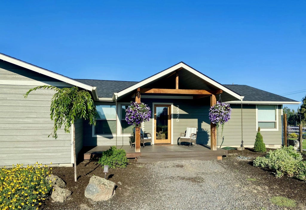 Country Living, Just Minutes from Bend! This remodeled ranch-style home on Bend's south end blends modern updates with timeless charm. Inside, refinished softwood floors pair with new flooring throughout, while the kitchen features stainless steel appliances, a center island, and tile countertops. The primary suite includes a walk-in closet and a spacious bath with dual sinks, clawfoot tub, and separate shower. Recent upgrades include a newer roof, siding, windows, doors, composite decking, HVAC, water heater, insulation, and a 300-amp electrical service, making the home move-in ready. Outside, 5 acres offer 3 acres of irrigation rights, a lined and fenced pond with 2hp pump, livestock cover, sheds, and garden boxes. A beautifully landscaped backyard provides a private space for entertaining or relaxing, with Cascade Mountain views as the backdrop. With room for RVs, toys, or a future shop, this property is the perfect mix of space, comfort, and Central Oregon lifestyle.