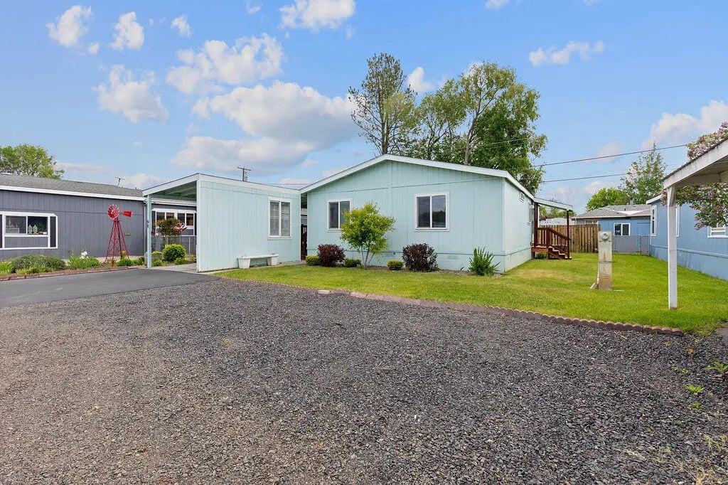 Charming 3 bed, 2 bath home located in a welcoming 55+ community features a spacious primary bedroom with walk in shower and large walk in closet. Large covered deck for relaxing and a beautiful low maintenance yard with flower beds, as well as a covered carport, extra parking and storage shed. Enjoy close proximity to amenities. RV storage is available for a $20 monthly fee. A lovely place to call home.