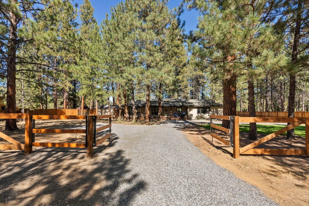 Seller-carry terms available. Gated, fenced, and cross-fenced, single-level retreat in coveted Tollgate, Sisters, Oregon. 2,216 SF includes 3 bedrooms, 3 full baths, and a home office. Rent out and lock off the primary suite with a private entrance - perfect for guests! Sun-drenched days unfold in the vaulted great room with skylights, hardwood floors, and a cozy propane fireplace. The remodeled kitchen showcases granite countertops, wood cabinets, and storage. Cozy up in the separate family room, complete with a wood-burning fireplace featuring a stone surround. Step outside to your oversized covered porch and envision lazy afternoons. The expansive wood deck beckons for gatherings, complete with a relaxing hot tub under the Oregon stars. Parking is a breeze with a 2-car garage and an RV parking area. New trim throughout, freshly painted exterior and decks. The Tollgate lifestyle could be all yours: saltwater pool, sports courts, clubhouse, snow removal, forest trail access and more!