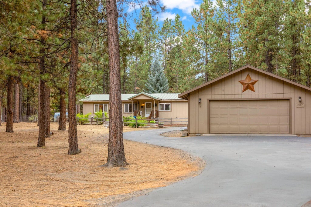 **Sellers are generously offering a $7,000 credit with a full price offer!** This cozy and inviting home sits just outside La Pine, only a short drive to the Cascade Lakes, Mt. Bachelor, and Bend. Nestled on a fully fenced acre with an asphalt driveway, the property features a detached two-car garage with a spacious workshop, perfect for projects or extra storage. Inside, you'll find two living rooms, a warm woodstove for winter days, and air conditioning to keep cool in the summer. Covered porches extend the living space outdoors, while the backyard is equipped with a sprinkler system, lush lawn, and a fire pit—ideal for gatherings and summer evenings under the stars. The large kitchen provides ample storage and prep space, while the oversized laundry room adds everyday convenience. With its thoughtful layout, workshop potential, and outdoor amenities, this home is designed for comfort, function, and family living.